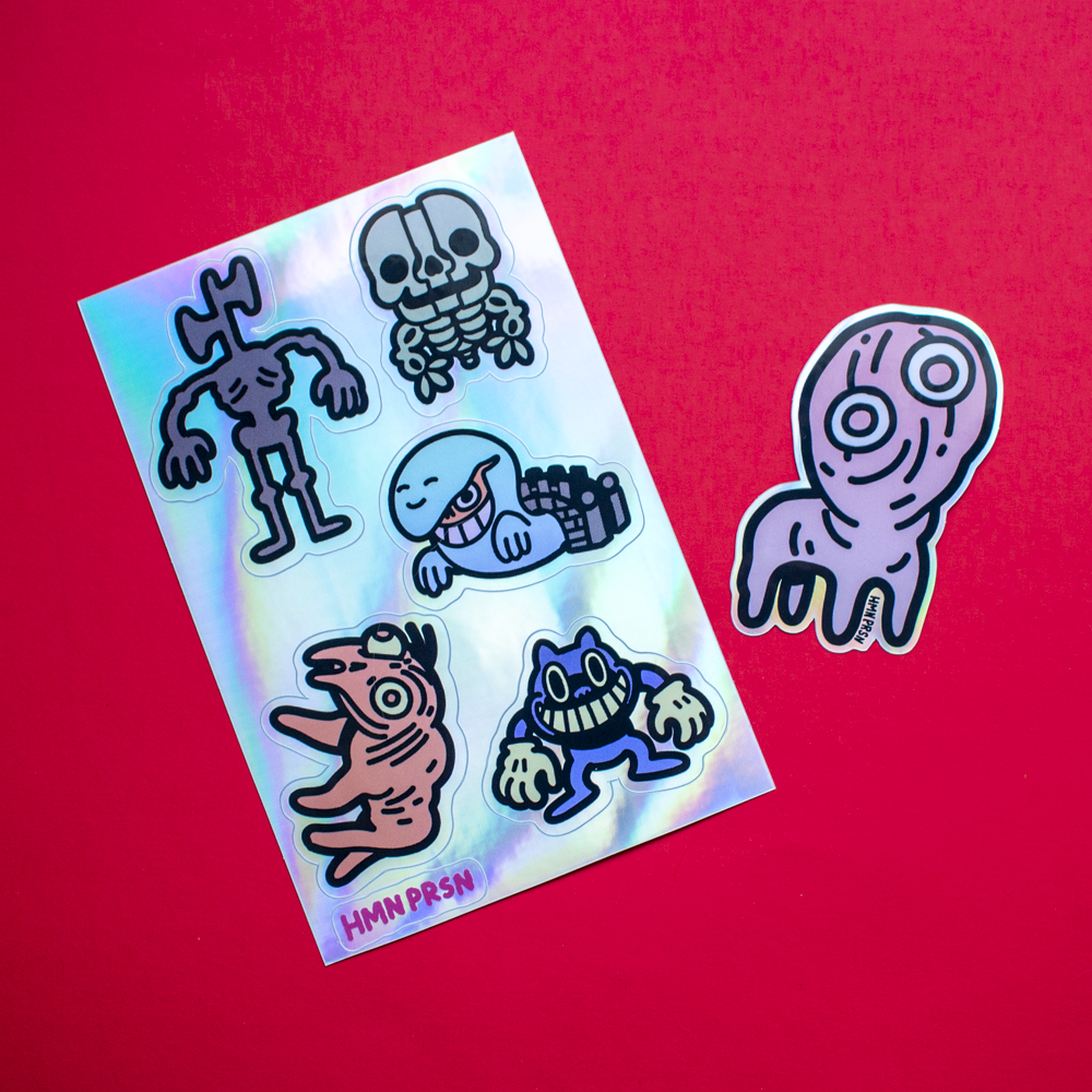 Get your Trevor-approved 100% genuine stickers featuring some of slimyswampghost's most iconic critters. We got, Sirenhead, Bridgeworm, Cartoon Cat, Bonesworth, Big Charlie AND Little Nugget! This set includes one shiny 6-4" sticker sheet, and one 3" Decal!